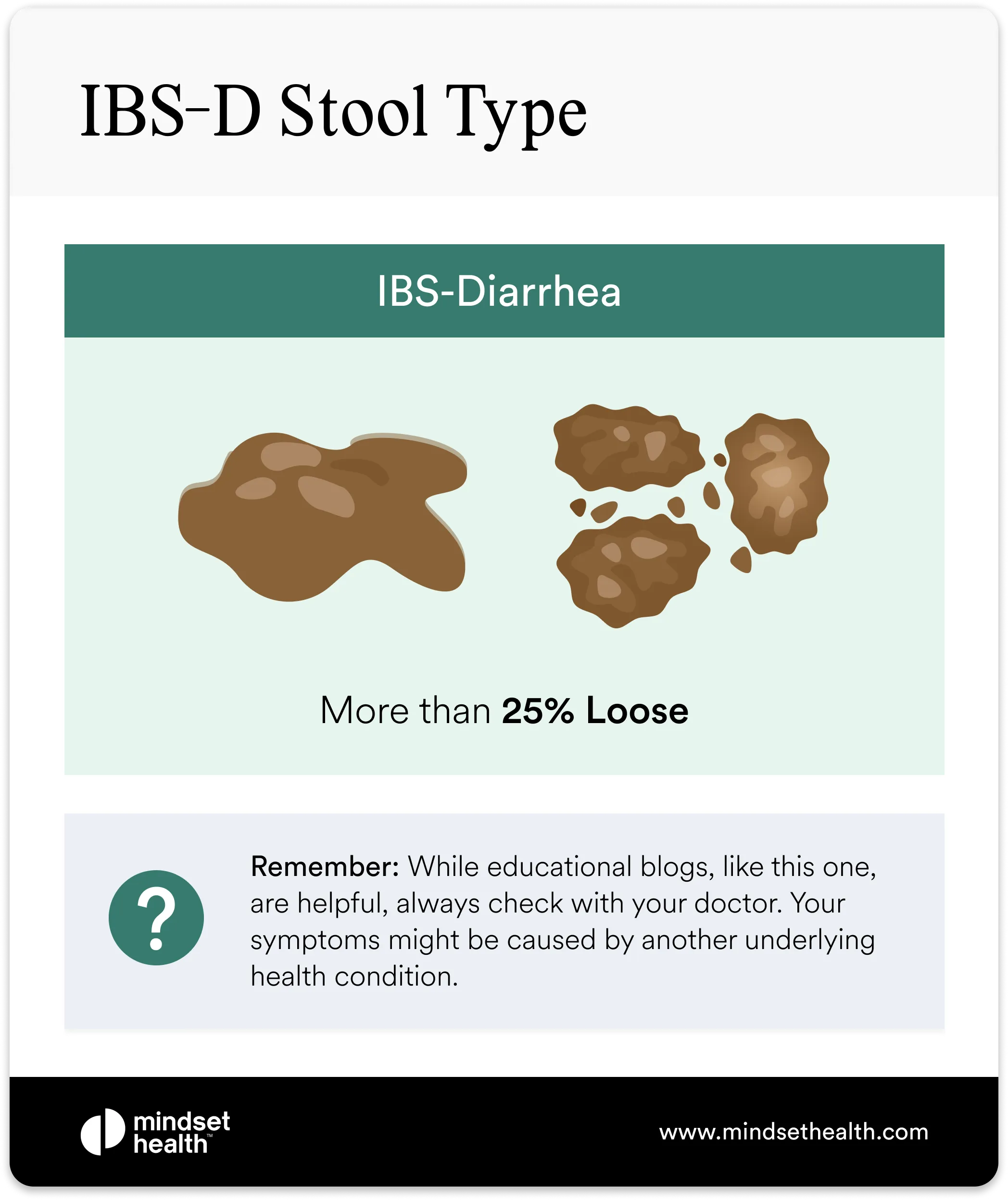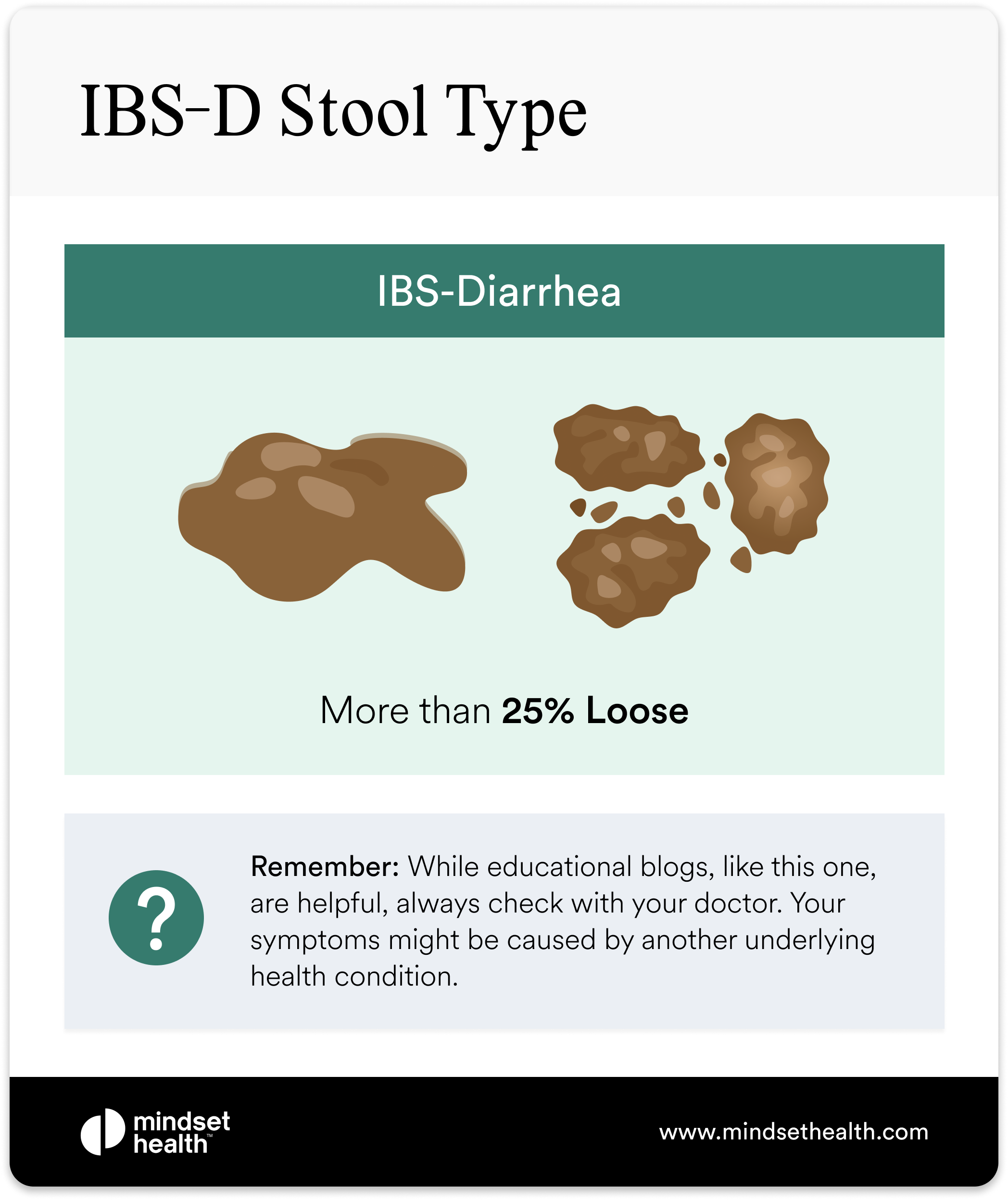 An IBS- D diagnosis requires more than 25% of stools to be loose and less than 25% of them to be hard and lumpy.